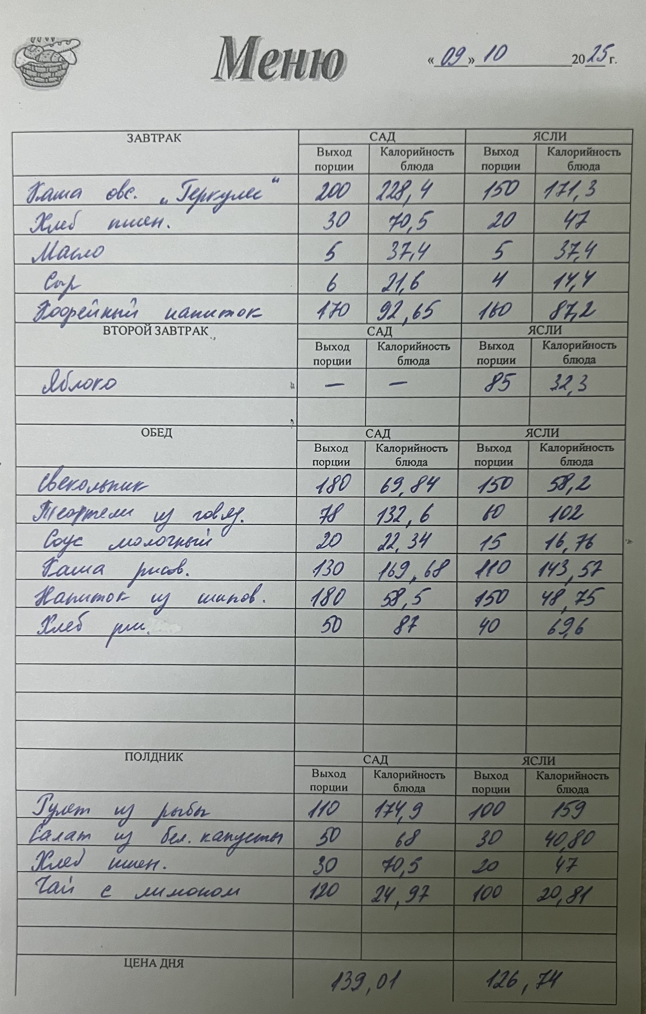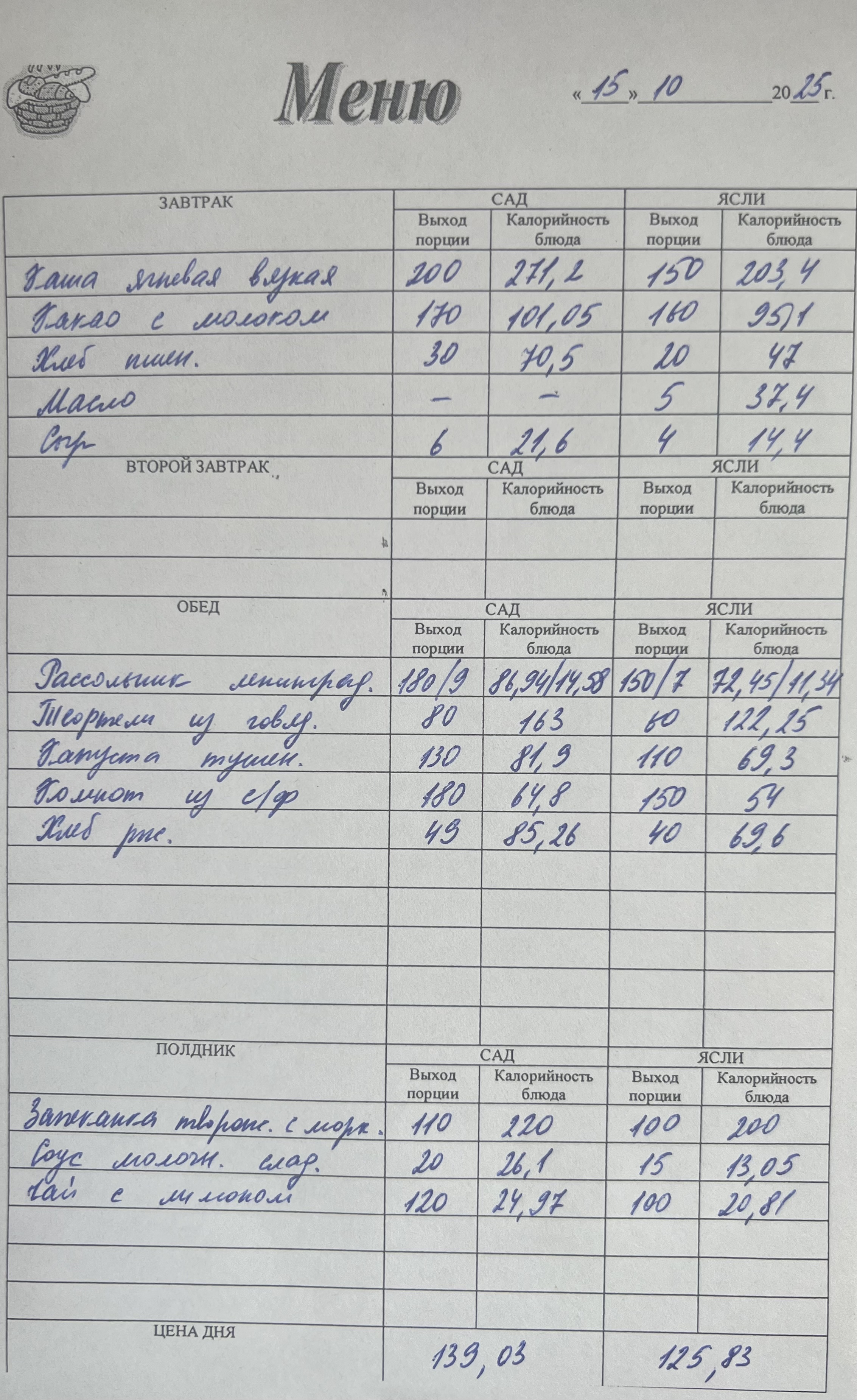 Соблюдаются принципы рационального и сбалансированного питания детей. Объем порций, содержание белков, жиров, углеводов и калорийность соответствуют требованиям СанПиН 2.3/2.4.3590-20 "Санитарно-эпидемиологические требования к организации общественного питания населения"